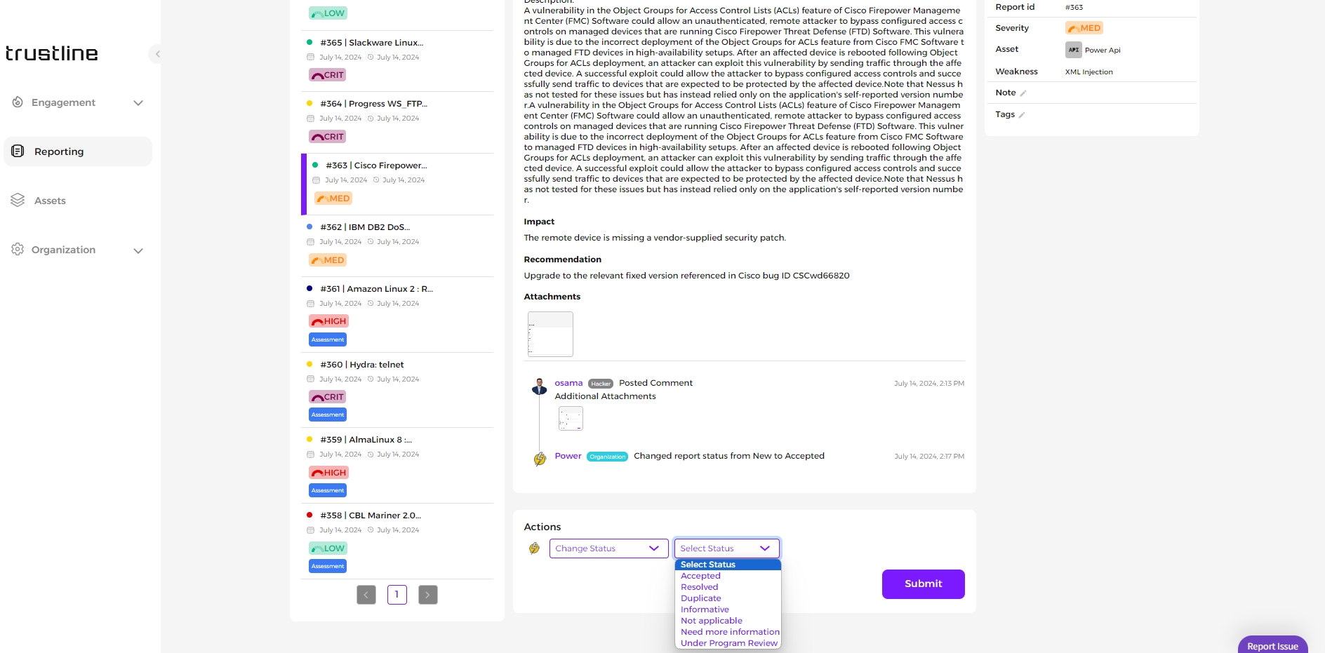 Trustline Platforms provide robust features for effectively managing reports and performing various actions on them from the reporting page.