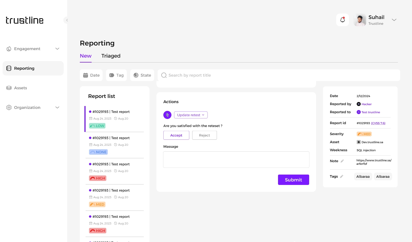 After submitting the retest request, the hacker will submit review and evaluate the results to confirm the effectiveness of the fix: